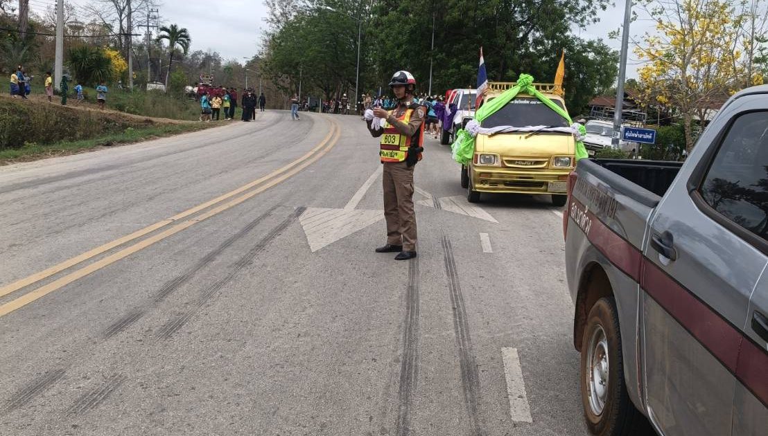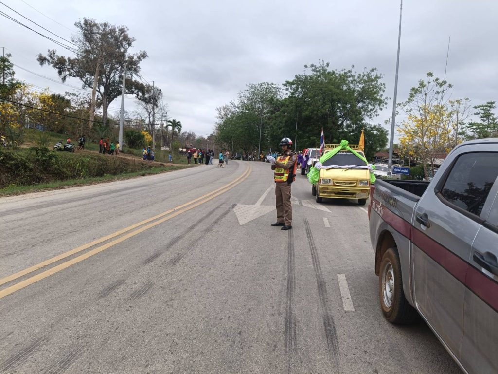 ชดุสายตรวจรถยนต์พร้อมชุดจราจร อำนวยความสะดวกด้านการจราจรในพิธีแห่อัญเชิญพระเวสสันดรเข้าเมือง ณ บริเวณข้างการประปานาด้วง ไปยังวัดเวียงล้อมบริเวณงาน ตามเส้นทางสายเลย-นาด้วง 20 มีนาคม 2568 by admnadung_nd812 / งานจราจร